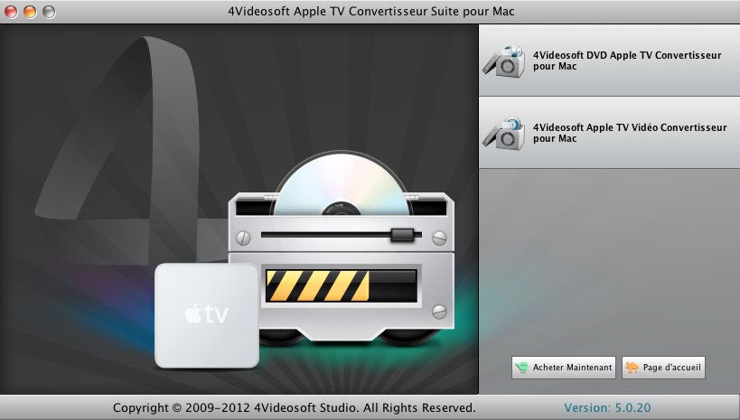 - Apple TV Convertisseur Suite pour Mac peut facilement convertir les derniers films DVD en format vidéo et audio compatible avec Apple TV sur Mac.