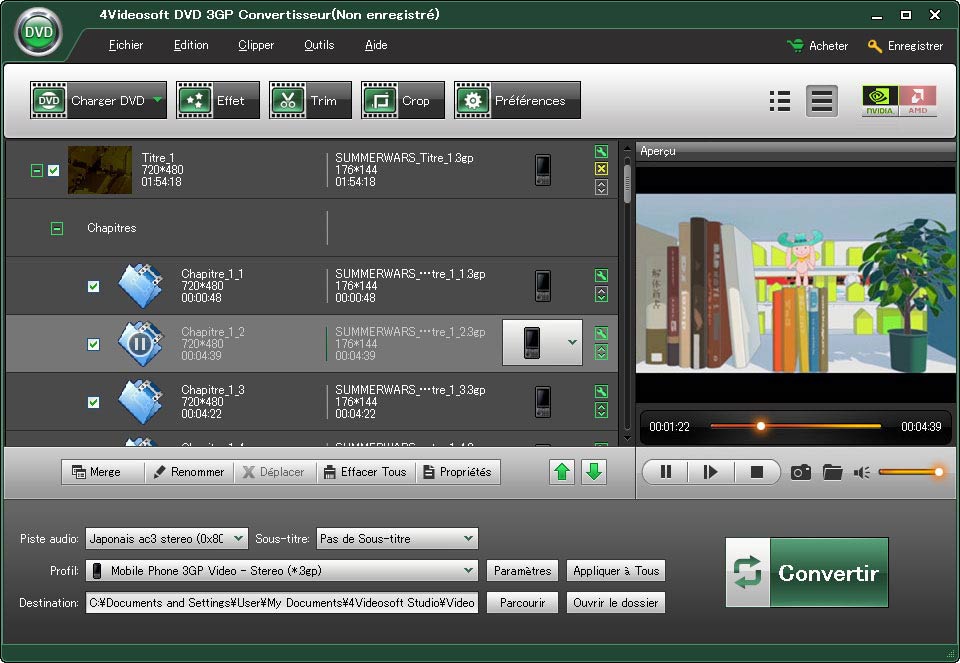 - DVD 3GP Convertisseurpossède des fonctions d’ édition et de convertir DVD à 3GP.