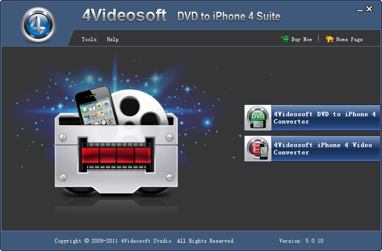 DVD iPhone 4 Suite, qui package les deux meilleurs Convertisseurs iPhone 4 : DVD iPhone 4 Convertisseur et iPhone 4 Vidéo Convertisseur, peut rip DVD en MP4, H.264 (.mp4), MOV, iPhone 4, donc vous pouvez les jouer sur votre iPhone 4 (respectivement en format audio WAV, MP3, M4A et vidéo MP4/MPEG-4). Et convertir tous les formats vidéo (AVI, MPEG, WMV, H.264/AVC, DivX, MOV, MKV, 3GP, RM et VOB) en format vidéo (MP4/MPEG-4 et MOV) et audio (MP3, WAV, M4A, AAC et AIFF) iPhone 4.