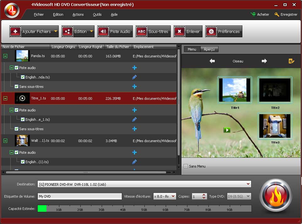 - Ce HD DVD Convertisseur offre de différents styles de frame et de bouton pour personnaliser le menu de DVD.