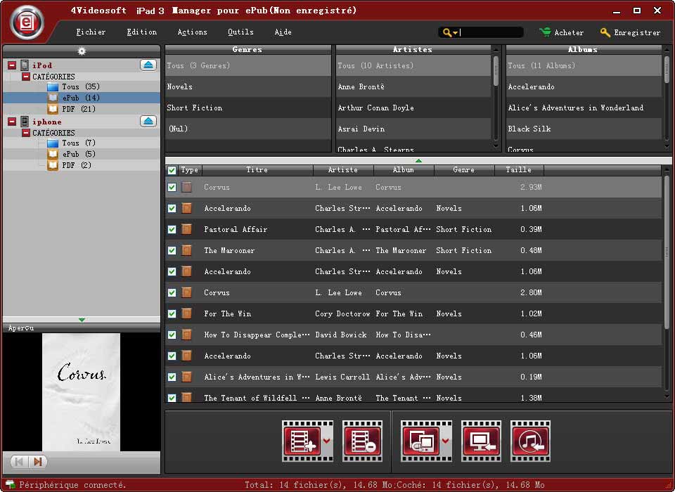 - iPad 3 Manager pour ePub est très facile à utiliser. Seulement quelques clics de souris peuvent terminer le transfert de fichier ePub pour iPad 3.