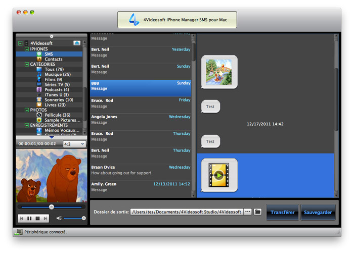 Caractéristiques Principales d'iPhone Manager SMS pour Mac