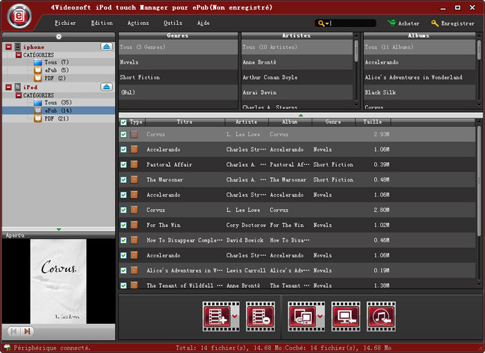 Caractéristique Principale d'iPod touch Manager pour ePub